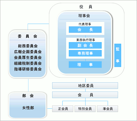 女性部は、本会会員、もしくは従事者の女性(事業主・青色専従者・従業員)が集まって、親会事業への支援協力、税務・経営知識の向上、部員相互の親睦を主な目的として活動しています。
